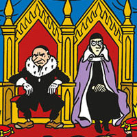 Na talloze nederlagen tegen Suske en Wiske wordt Krimson uiteindelijk opgesloten in de psychiatrische inrichting De Zoete Rust. Daar komt hij onverwachts oog in oog te staan met de Koningin van Onderland, die op haar beurt steeds het onderspit delft in de strijd met Jommeke en zijn vrienden. Al snel besluiten de twee schurken hun krachten te verenigen. Ze weten te ontsnappen en maken gebruik van de Teletijdmachine van professor Barabas om af te reizen naar de middeleeuwen...
