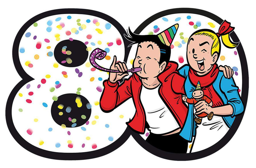 En nu is het 2025: Suske en Wiske zijn 80 jaar! Hoofdtekenaar Wout Schoonis ontwierp een feestelijk logo, dat het hele jaar op de albums zal prijken. Natuurlijk zullen er gedurende het jaar bijzondere uitgaven verschijnen. Om niets te missen, hebben we een handig overzicht gemaakt.
