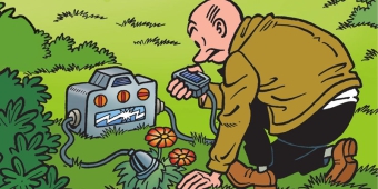 Zorgen dat er elke dag een halve strippagina in de krant verschijnt, dat is een flinke uitputtingsslag, zelfs voor Willy Vandersteen. In 1956 moest hij er echt even tussenuit. Nadat De spokenjagers was verschenen in De Standaard, kregen de lezers op 10 augustus...